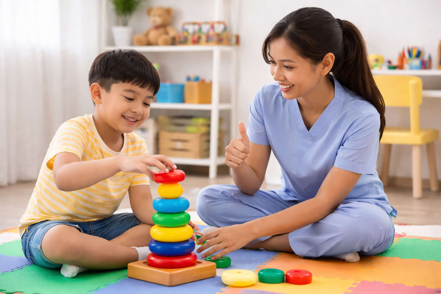 Some children and adults with autism may have difficulty with movement skills such as sitting properly, walking, running, jumping, or maintaining balance. Physical therapy (PT) helps improve strength, coordination, posture, and overall body movement so the person can participate more confidently in daily activities.